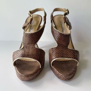 Runway Oscar de la Renta Snakeskin Platform Sandals w/ Gold Metallic Piping 38 8