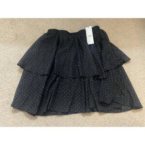 Runway Paris Women's Black/Gold Polka Dot Ruffle Layered Skirt Size S Small
