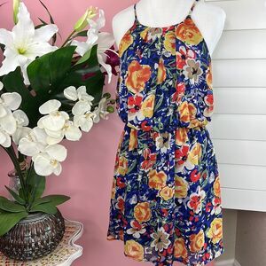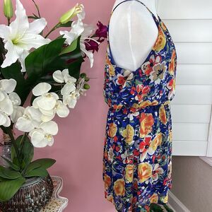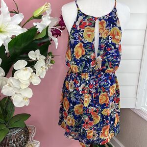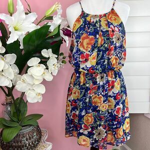 • Runway Story Multi Color Floral Watercolor Keyhole Back Flowy Dress