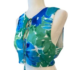 Runway The Label RWNY NWT Cropped Top Blouse size 8 Keyhole Cutout Lace Up Boho Large