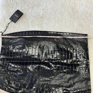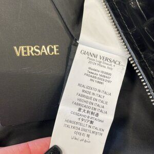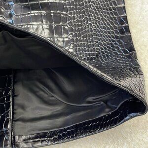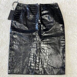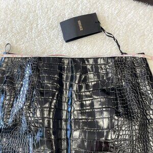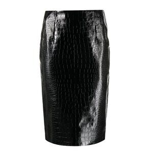 Cut to a curve-grazing silhouette, this Versace midi skirt showcases the brand's sleek and opulent aesthetic through the textured crocodile embossing, elevating the leather construction.