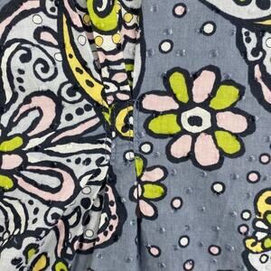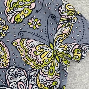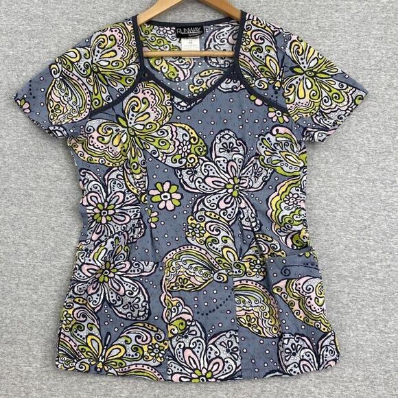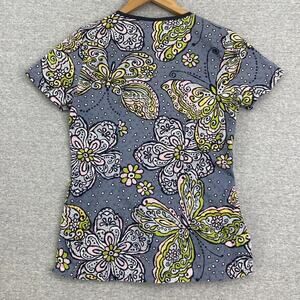 Runway by Cherokee Scrub Top Womens XS Gray Yellow Butterfly Fitted Healthcare
