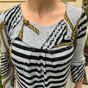 Runway grey with black and gold knitted ropes sweater, long-sleeved, size Large. Very unique. Minimally worn, great condition