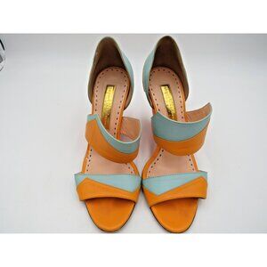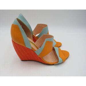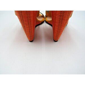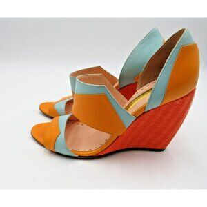 Rupert Sanderson Sandals Womens Size 8 Orange Wedge Leather Made Italy
