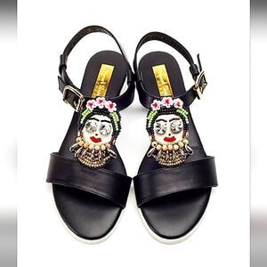 Rupert Sanderson pays homage to iconic artist Frida Kahlo with these ‘Cara’ sandals. Expertly crafted in Italy from leather, this quirky pair is embellished with multicolored beads and crystals. Wear yours with a summer dress or shorts.