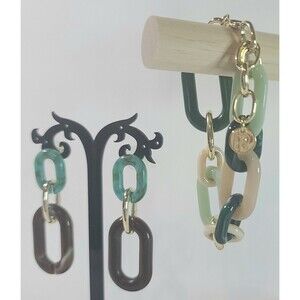 The set includes both earrings and a bracelet, both made from high-quality resin material. The multicolor design makes it easy to match with any outfit, and the lack of stones makes it a perfect choice for those who prefer a more minimalist look. This jewelry set is a true beauty and is sure to make a statement wherever it's worn.