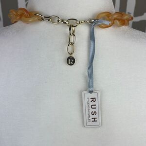 Rush By Denis & Charles Plastic Shades of Amber Chain Link Necklace NEW. Features shades of amber colored plastic links, gold 3" extender chain and clasp. Plastic links measure approximately 18.75" long, entire necklace measures approximately 22.5" from tip of clasp to end of extender chain. Brand new with tags and no flaws to note. Treat yourself to a fabulous new neutral colored necklace!