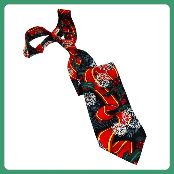 Rush Limbaugh Christmas Tie NO BOUNDARIES Men's Red Green Gold Chain 3.75"