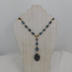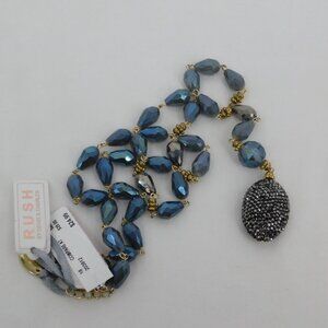 Rush by Denis and Charles Necklace Blue Faceted Teardrop Beads Sparkly Gold Tone