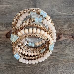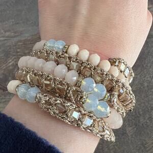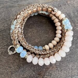 Rush by Denis and Charles Peach Clear and Gold Faceted Beaded Wrap Bracelet