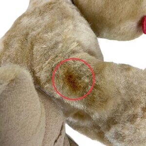 Good vintage, pre-owned condition with several faint dark stains on the surface of the plush (please see photos). Rushton tag is frayed.