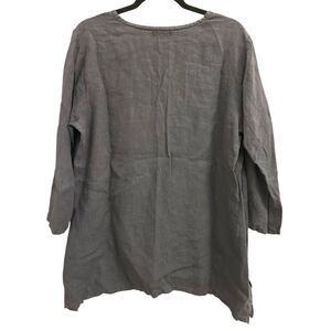 Russ Berens 100% Linen Tunic Blouse Dark Gray size L lagenlook boho minimalist