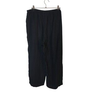 Russ Berens Pants Women's Size Medium Black 100% Linen Stretch Waist