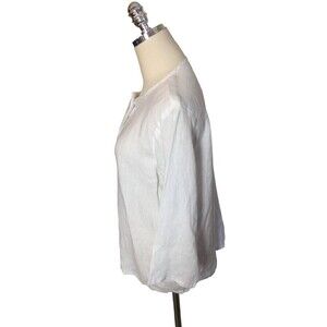 Russ Berens Size Extra Small Top White Long Sleeve Lagenlook Linen Lace Trim XS