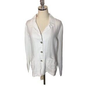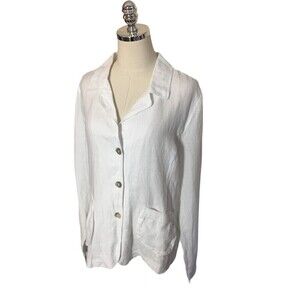 Russ Berens Size Large Top White Long Sleeve Lagenlook Minimalist Linen