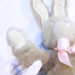 Russ Berrie Beige Hopscotch Plush Bunny With Ribbon and Corduroy Adjustable Ears