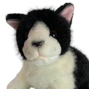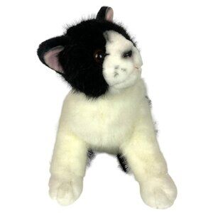 Russ Berrie Checkers Cat Plush Black White Stuffed Animal 10 inch Vintage Kitty