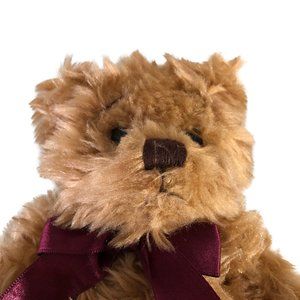 Russ "Gregory" Created by Carol-Lynn Rossel Waugh Tan Bear Red Ribbon; 7" Sitting, Item # 727, RETIRED, Antique Reproduction, Fuzzy Shaggy Tan, Beige Fur, Black Bead Eyes, Embroidered Eyebrows, Nose, Mouth, Brown Velvet Feet and Paws; Machine Washable; Pre-owned, Excellent Used Condition, No Stains, Rips or Tears; Comes with his card, but no tags; See all photos for condition & descriptions; Ships Quickly, Monday - Friday (Excluding Federal Holidays)
