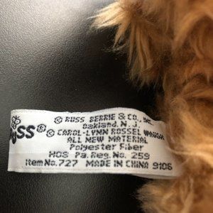 Russ Berrie "Gregory" Bear Created by Carol-Lynn Rossel Waugh Fuzzy Tan 7"