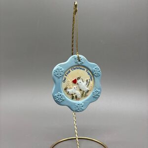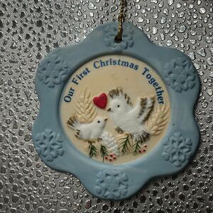 Russ Berrie Ornament Our First Christmas Together Blue Frame Doves Heart 1980s
