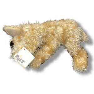 Gusto Russ Berrie Plush Dog Pup Brown Shaggy Stuffed Animal Soft Pet 12” Nursery Bedroom Decor, Baby Shower Gift, Animal Wildlife Nature Nostalgia Theme New With Tags