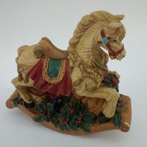 Russ Berries Christmas Rocking Horse w Bear Gifts Table Top Decor Resin