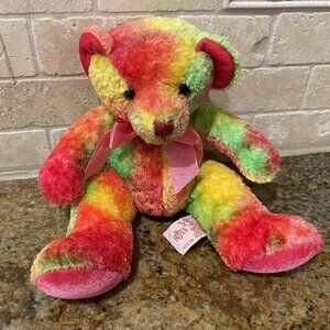 Russ Confetti Teddy Bear Plush Toy Animal 10" Rainbow Splash Tie Dye Ribbon