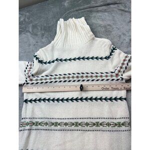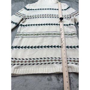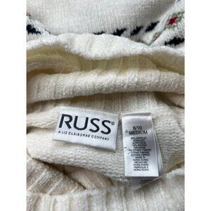 Russ Liz Claiborne Womens Medium Cream Knit Turtleneck Sweater Christmas Pattern