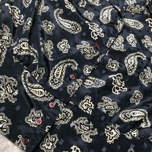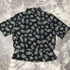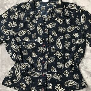 Russ Petites Vintage Navy Blue Paisley Button Up Short Sleeve Peplum Blouse