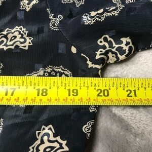Russ Petites Vintage Navy Blue Paisley Button Up Short Sleeve Peplum Blouse. NO SIZE TAG - Use measurements in photos for fit.
