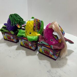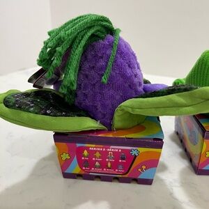 Discover the enchanting Russ stuffed animal collection featuring a whimsical purple dragon and a cheerful yellow character. These plush toys boast vibrant colors and a soft, cuddly texture, making them perfect for imaginative play. Their charming cartoonish design adds a playful touch to any toy collection.