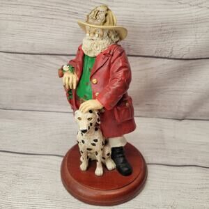 Comments: Clay or ceramic figure of Santa with his dalmatian mounted on a wood base. Perfect gift for a collector or firefighter.