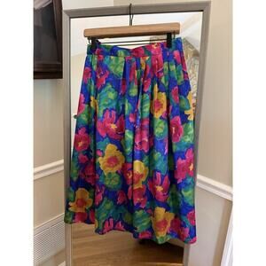 Russ Vintage 80s Floral Skirt High Waist Midi Pleated Bold Bright Print