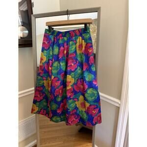 Russ Vintage 80s Floral Skirt High Waist Midi Pleated Bold Bright Print Size 12