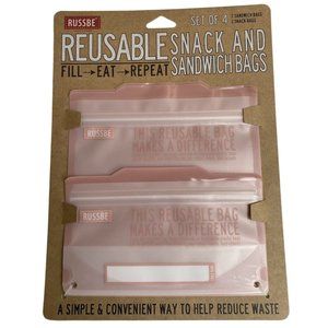 Russbe Reusable Sandwich/Snack Bag Pack of 4, NWT, 2 Sandwich Bags & 2 Snack Bag
