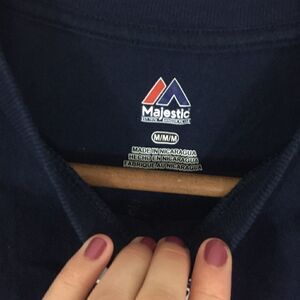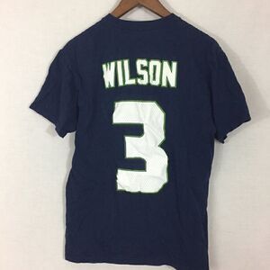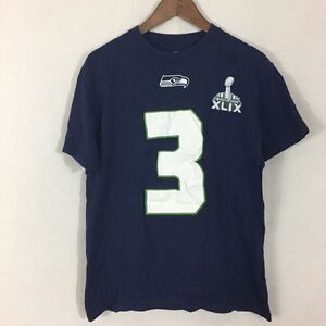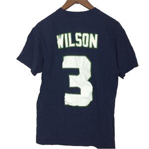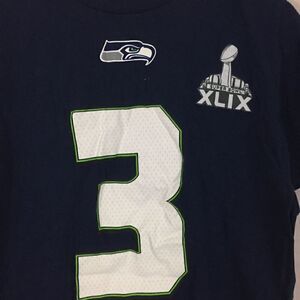 Majestic brand Russel Wilson Super Bowl tee shirt. Navy blue, screen printed on front and back. Used but in great condition.