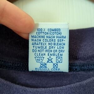 VTG and straight out of the 90s - This t-shirt was made in the USA to features short sleeves, a ribbed crewneck, and a classic fit. It is navy in color with orange text on the upper left chest that says Making Tracks and paw prints across the front and around the sleeves. It has a small brand tab on the lower left side. It is soft, lightweight, and comfortable. Pair with high waisted mom jeans or shorts and sneakers for a classic, retro athletic look! High quality!