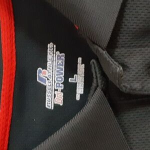 Classic black polo with striking scarlet & gray trim. Team spirit!