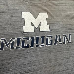 Gray DriFit type fabric with Michigan in gray and dark blue. Lightweight. Excellent smoke free condition.