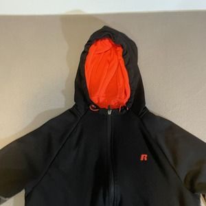 Russell Athletic Heather Gray Black Red Full Zip Hoodie Medium