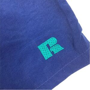 Russell Athletic - navy blue athletic and or swim shorts. Hip pockets. Underwear lined - inside drawstring, elastic waist. No signs of wear. No holes or stains and smoke free home. Size Large Waist (unstretched) 27 inches Inseam 5.5 inches F12
