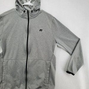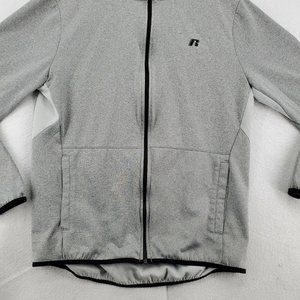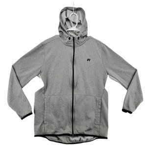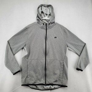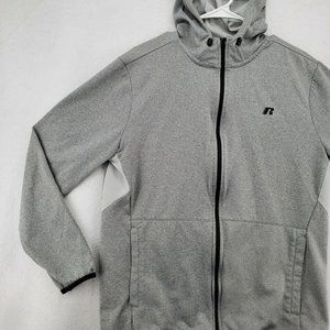 Russell Athletic Mens Grey Black Stripe Full Zip Hoodie w/Drawstring Size Medium