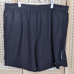 These sleek, black activewear shorts have lots of great features: regular pockets plus a zipper pocket on the right side, an elastic waistband plus a drawstring waistband. They're also fully lined with a breathable mesh fabric. Size: 2XL Measurements: Waist: approximately 20 inches unstretched Rise (crotch seam to top of front waistband): approximately 13.5 inches Inseam (crotch seam to hem): approximately 9 inches
