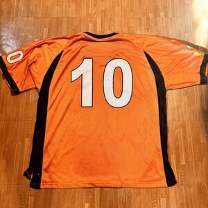 Vintage Russell Athletic Texas #10 orange and black football jersey. Men’s size XL, measures approximately 29” pit-to-pit and 31” in length. Classic mesh fabric with bold lettering and sleeve detailing. Made in China.