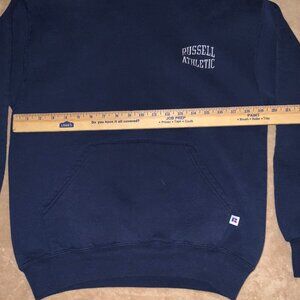 Russell Athletic Youth Medium Embroidery Navy Blue Sweatshirt Hoodie Pocket C03