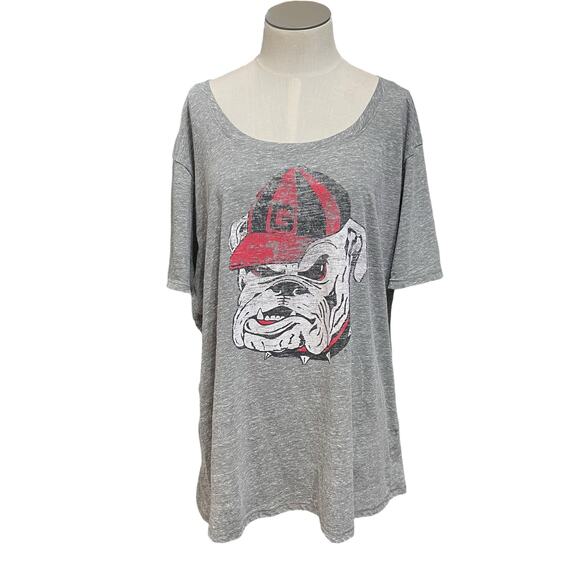 Russell Georgia Bulldogs Womens Gray Distressed Cotton T-Shirt Sz 3XL/22W-24W