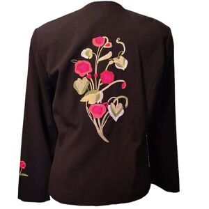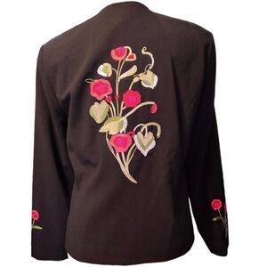 Russell Kemp Collection Vintage Rose Embroidered Lined Black Jacket Size 12