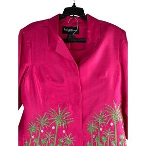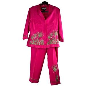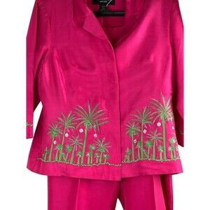 Russell Kemp Vintage Silk Pantsuit Sz 12 Embroidered Tropical Cruise Island Pink