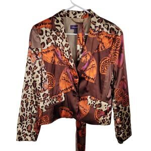 Russell Keng Womens Silk Brown and Orange Butterfly and Cheetah Print Jacket