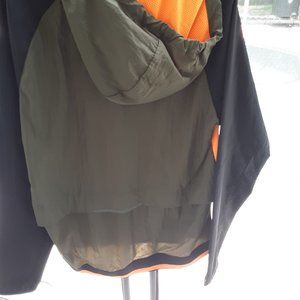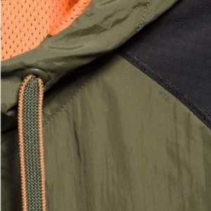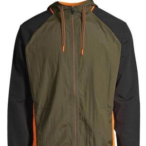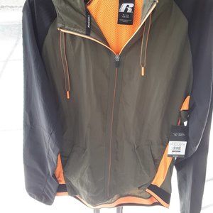 The "old school" inspired color block and fabric mixing makes Russell's windbreaker jacket edgy, stylish and functional. Performance details ensure your workout stays on point.